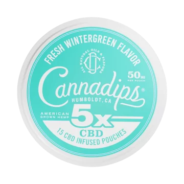 We also offer Cannadips 5x CBD pouches in Fresh Wintergreen, Rebel Red Apple, and Southern Peach. The 5x tins contain 50mg per pouch and 15 pouches per tin (750mg total).