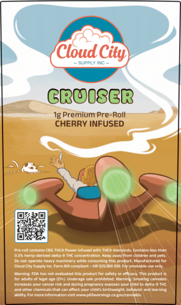 Introducing the Cloud City Cruiser. Get ready for a smooth cruise with every drag you take from our new 1g premium THCA pre-roll. Our out of this galaxy pre-rolls featureĀ infused THCA flower, delivering a unique flavor profile that cruises between earthy, pine, and floral notes.